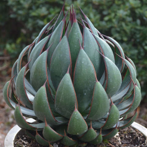 Dark green leaves stay curled upward like a teardrop or an artichoke, where the cinnamon brown terminal spines nearly touch each other. 'Praying Hands' gets its unique habit from one its parents, Agave ocahui.